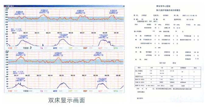 ◆自動分析:監(jiān)護過程中,系統(tǒng)實時在線自動分析所有參數的變化情況,并給出診斷結果及胎兒評分等相關信息。